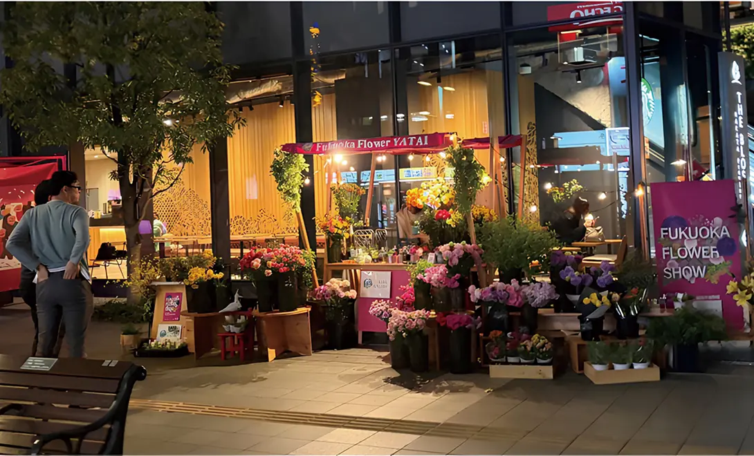 At Kushida-jinja Shrine’s Nigiwai Square, the Fukuoka Flower Show will present a series of Hanayatai (flower stalls) This special event will fill the venue with colorful decorations and create perfect photo opportunities. Be sure to stop by along with the Light Up Walk.